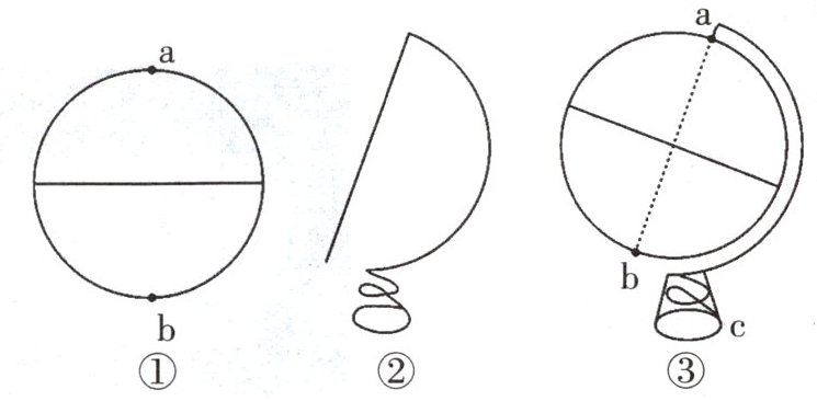 第五步:在图③中c部位,包上一些橡皮泥,使做好的小地球仪不会翻倒。