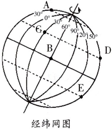 (2)在图中相应位置标出F点(0°,0°)H点(66.5S,20°W)的位置。
