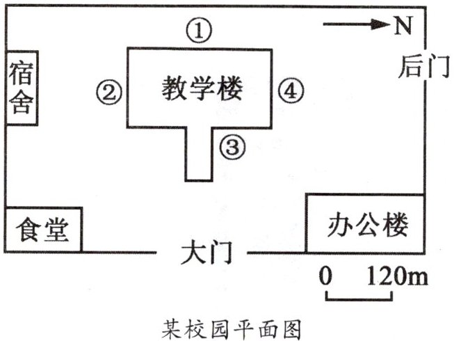 9.如果在教学楼南面挂窗帘,应挂在图中哪一位置 (