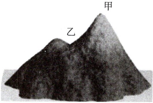 (1)步骤一:用橡皮泥捏一个山体模型(如右图)。图中甲、乙分