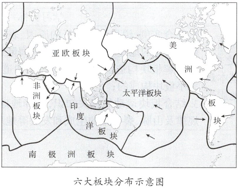 板块构造学说是在大陆漂移说的基础上提出的,可以很好地解释地表形态的运动与变化。下图为“六大板块分布示意图”。据此完成5~6题。