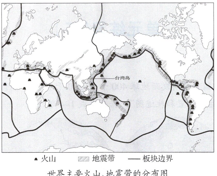 (4)我国台湾岛位于太平洋板块与亚欧板块交界处,板块与板块碰撞挤压运动频繁。