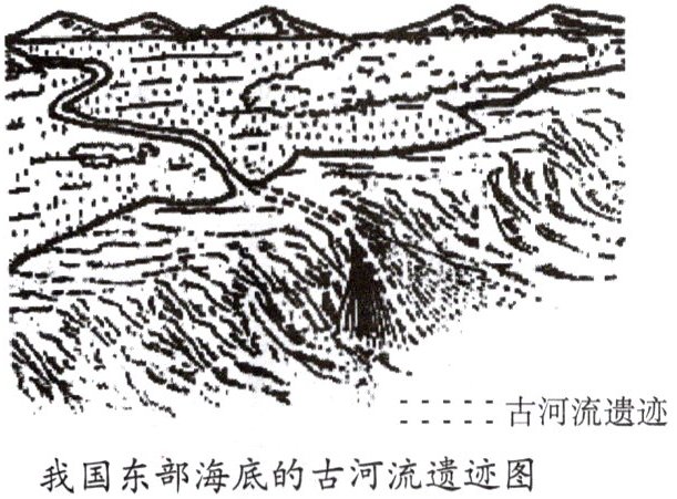 科学家在我国东部海底发现了古河道及水井等人类活动的遗迹。下图为“我国东部海底的古河流遗迹图”。据此完成11~12题。