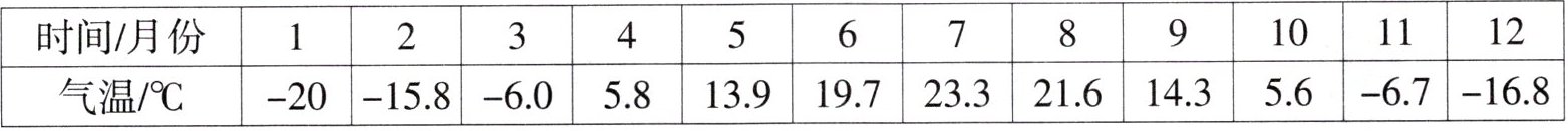气温/C -20-15.8-6.05.813.919.723.321.614.35.6-6.7-16.8