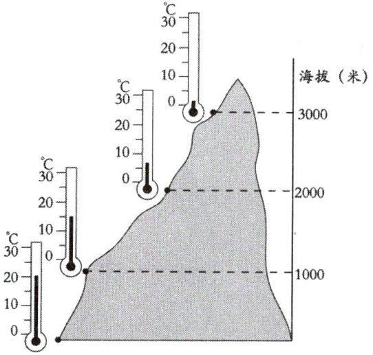 12.根据上述探究结果,可计算出非洲最高峰乞力马扎罗山(海拔5895米)的山顶气温,比同纬度海拔900米处气温低 (