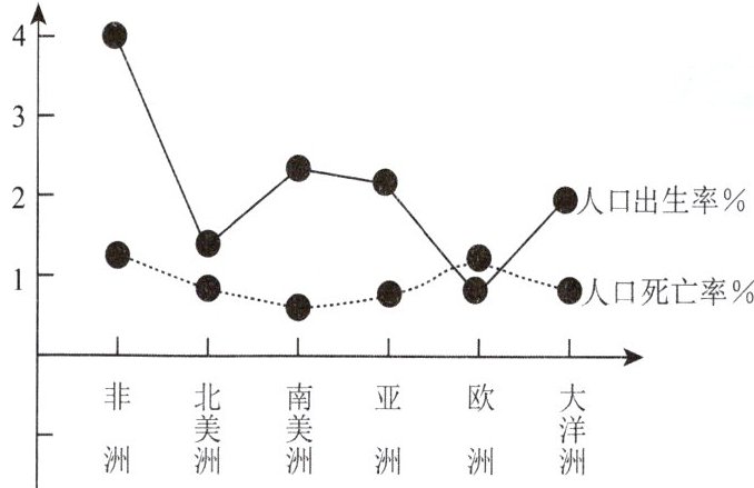 1.图中人口出生率最低的大洲是 (