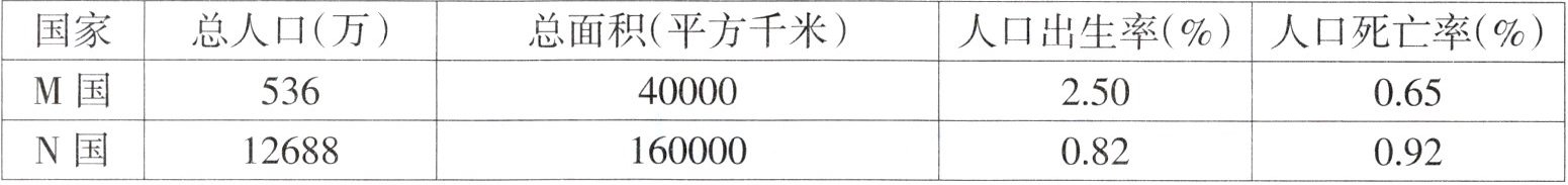 下表为M、N两国人口概况调查表。据此完成4~5题。
