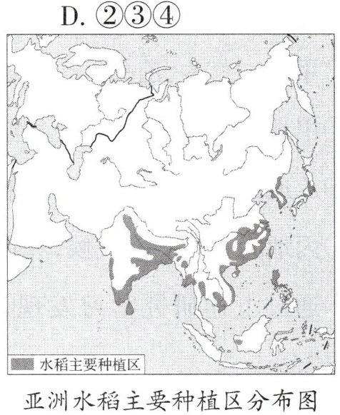 粮食”。右图为“亚洲水稻主要种植区分布图”。据此完成
