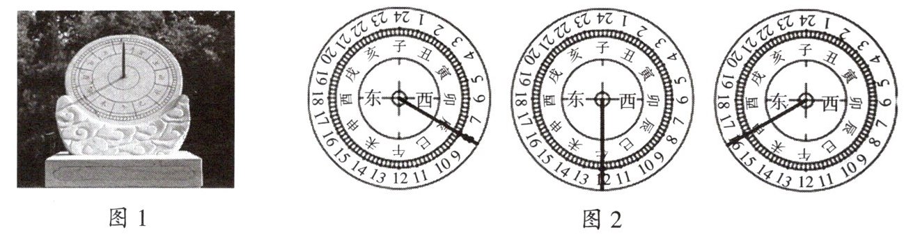 日晷(图1)是古人观测日影计时的仪器。某中学地理兴趣小组对日晷进行观测,并将晷针的日影绘制成图(图2)。据此完成4~5题。