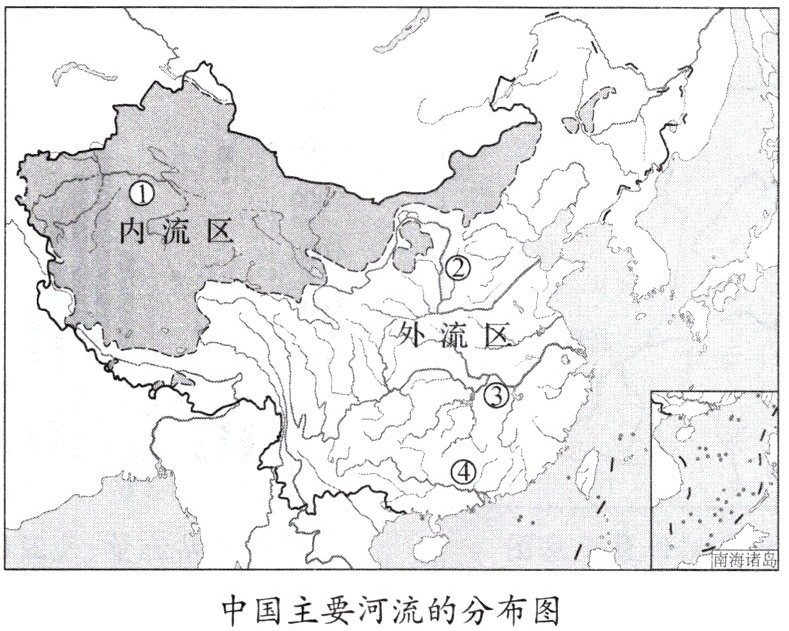 我国是世界上河流众多的国家之一,有许多源远流长的大江巨川。读中国主要河流的分布图,完成 1 - 3 题。