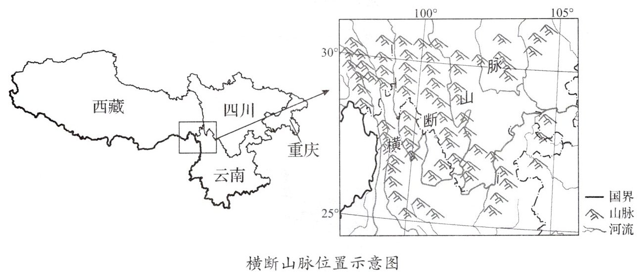 横断山脉是我国重要的地理界线之一,两侧地形、地势差异显著。