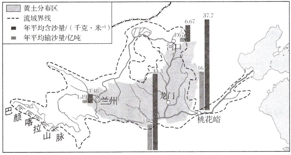 逐渐增多,最终形成了我们所熟知的黄色河流,“黄河”的名称才确定下来。读黄河流域水系及主要河段年平均含沙量、输沙量对比图,完成14-15题。14. 黄河的源头和注入的海洋分别是(