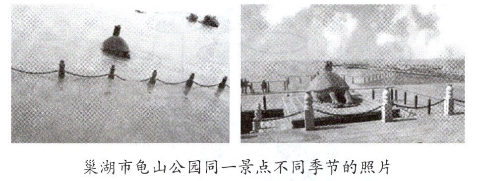 下面是一组巢湖市龟山公园同一景点不同季节的照片。据此完成 7 - 8 题。