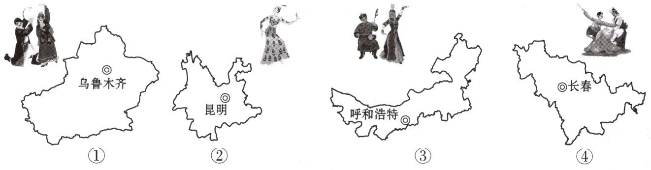 “五十六个星座,五十六枝花,五十六族兄弟姐妹是一家……”这首歌唱出了各族人民的心声。据此完成 1 - 2 题。