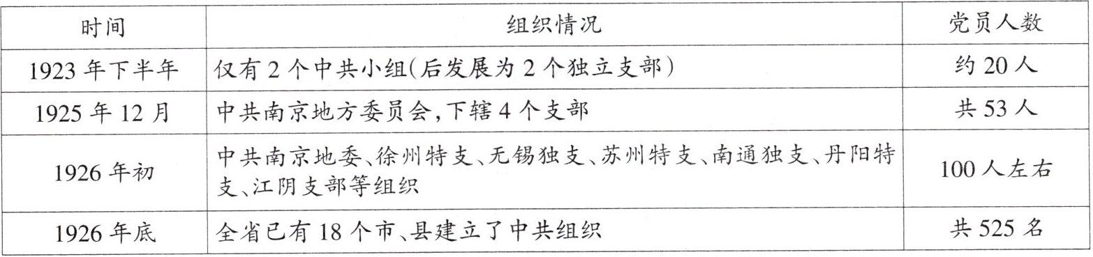 5. 下表反映了 1923—1926 年江苏地区中共党组织的发展情况。这从一个方面说明( )