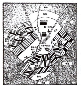 2. 右图是欧洲中世纪农村布局示意图,它反映出的社会组织形式是(
