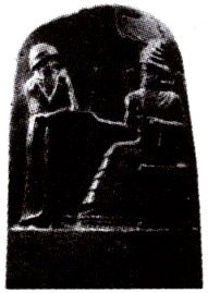 4. 下图是《汉谟拉比法典》石柱上端的浮雕。观察图片,浮雕的寓意是 (