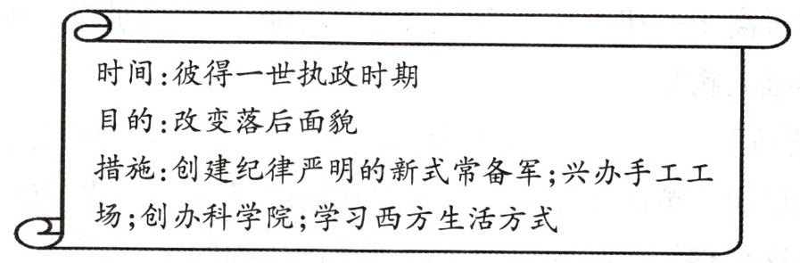 2. 彼得一世创建了一支纪律严明的新式常备军,要求贵族必须到军队或者行政机构为国家服务,按功劳和才能提拔人才,通过改革(