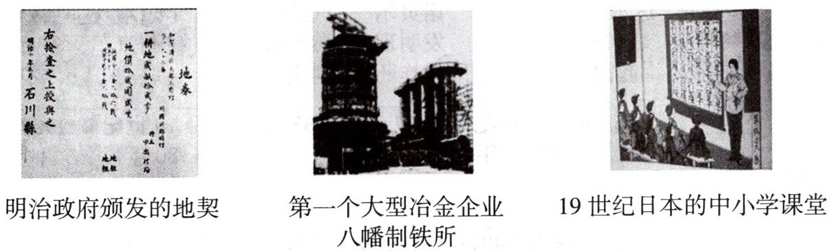 (2)信息:推行地税改革;政府投资兴办近代企业,即“殖产兴业”;提倡“文明开化”,向西方学习,改造日本教育,培养建设人才。