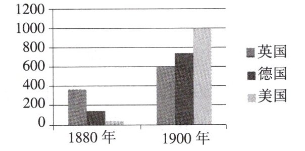 4. 下图是1880—1900年间主要资本主义国家的钢产量变化柱状图,据此可知(