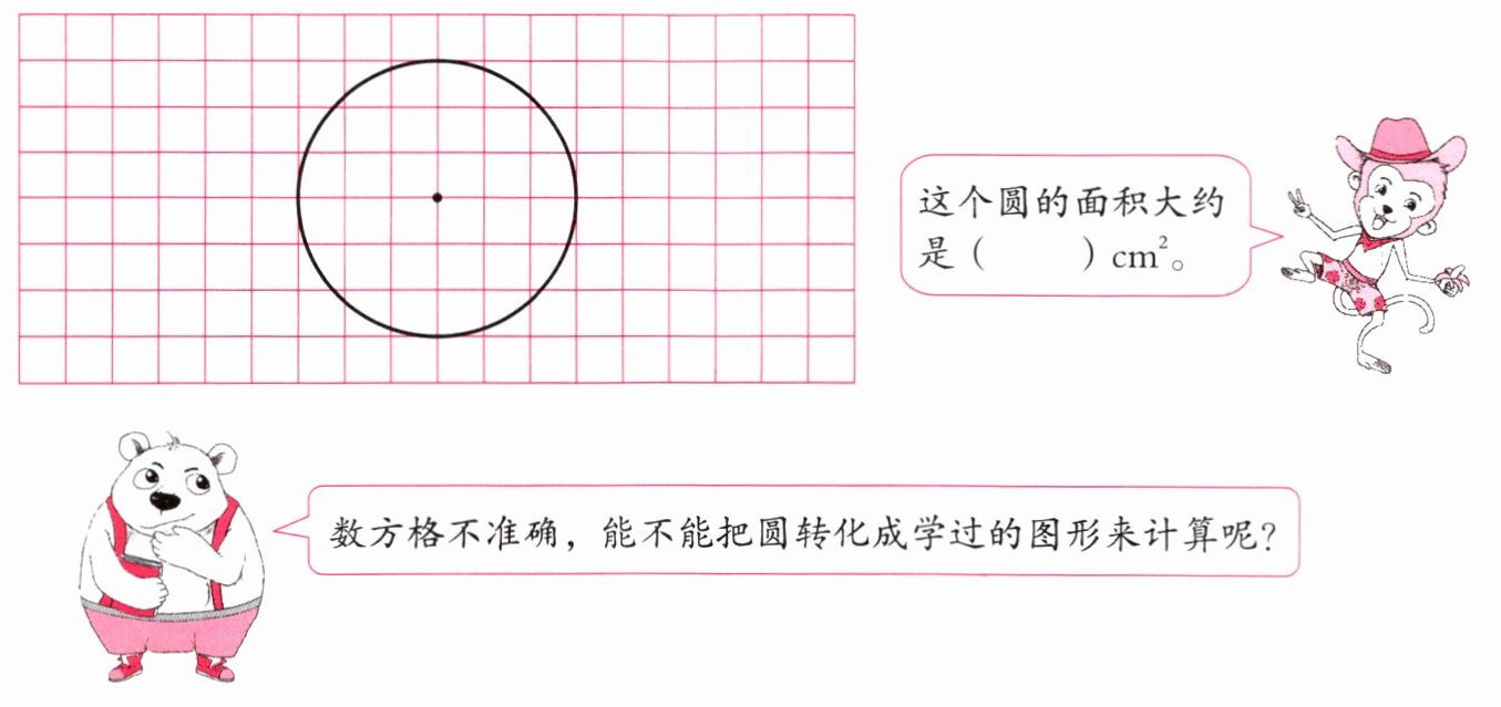 用数方格的方法估一估下面圆的面积。(每个方格边长1cm)