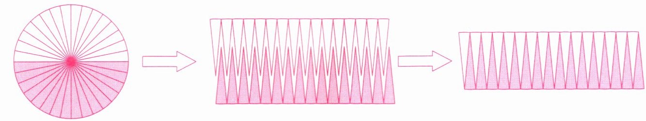 仔细观察,拼成的近似长方形与原来的圆之间有什么关系?