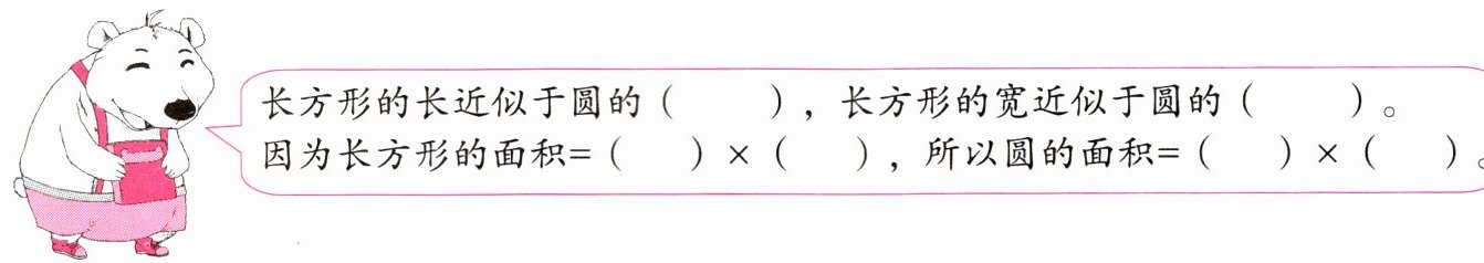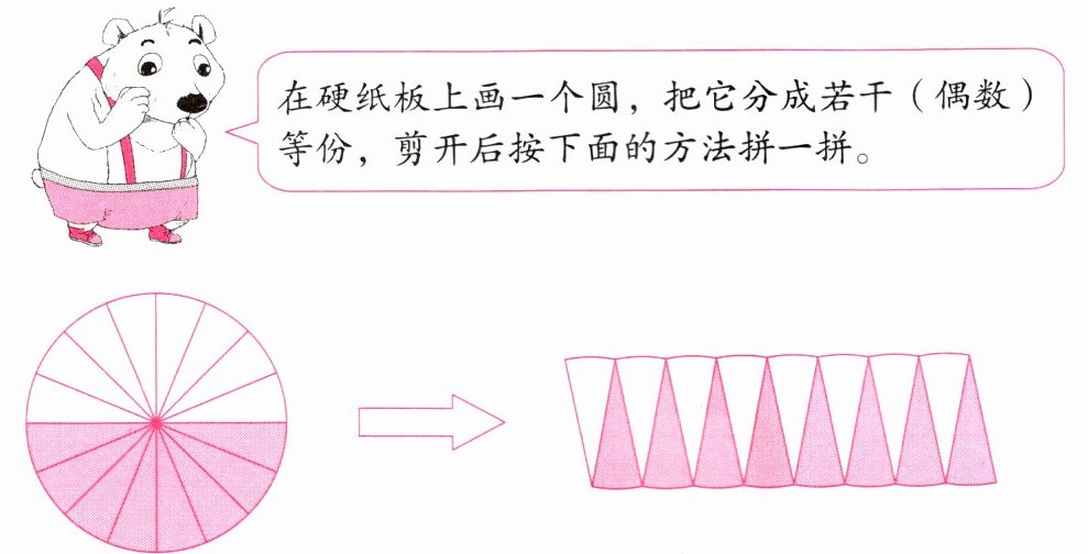 )形。仔细观察,拼成的近似长方形与原来的圆之间有什么关系?