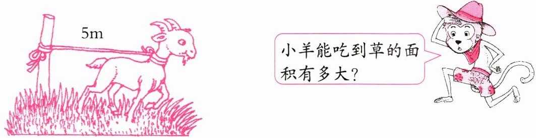 小羊能吃到草的形状为圆形,其半径为绳长$5$米。