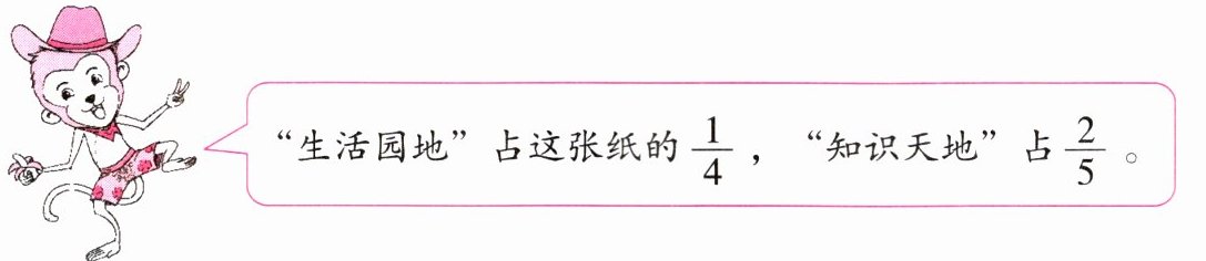 “生活园地”占这张纸的$$ \frac{1}{4} $$,“知识天地”占$$ \frac{2}{5} $$。