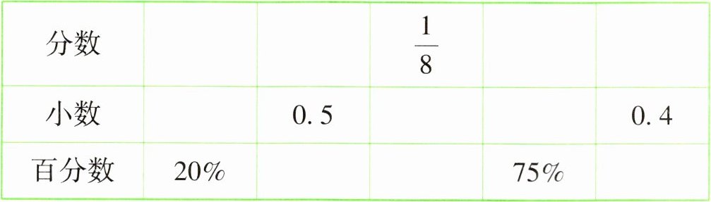 分数:$\frac{1}{5}$;$\frac{1}{2}$;$\frac{1}{8}$;$\frac{3}{4}$;$\frac{2}{5}$