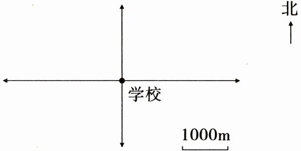 (2)小红从学校出发沿南偏西 45°方向走 2000m 到图书馆。在图中标出图书馆的位置。