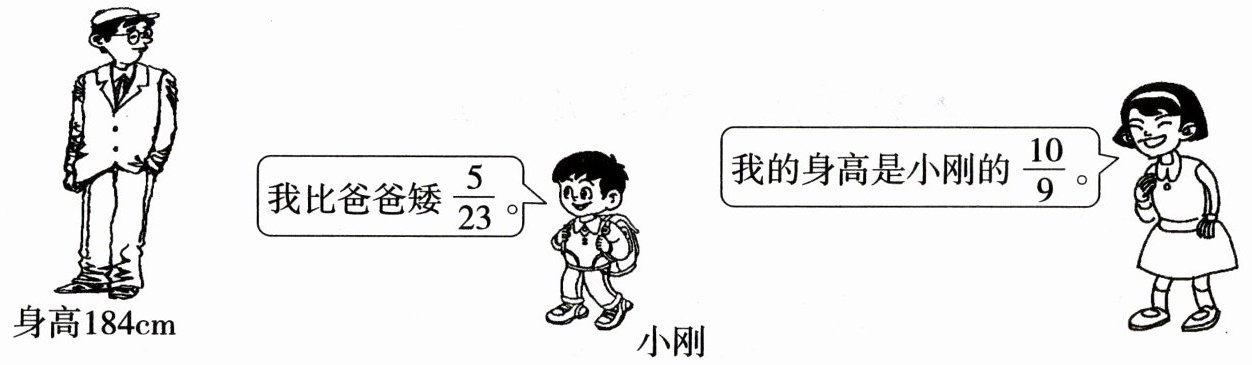 小刚:$184×(1-\frac{5}{23})=144$(cm) 妈妈:$144×\frac{10}{9}=160$(cm)