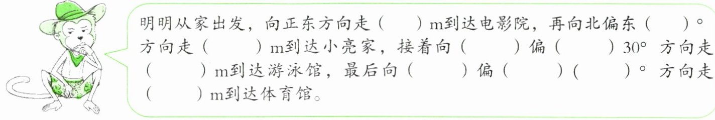 2. 照样子,试着描述明明从体育馆回家的行走路线。
