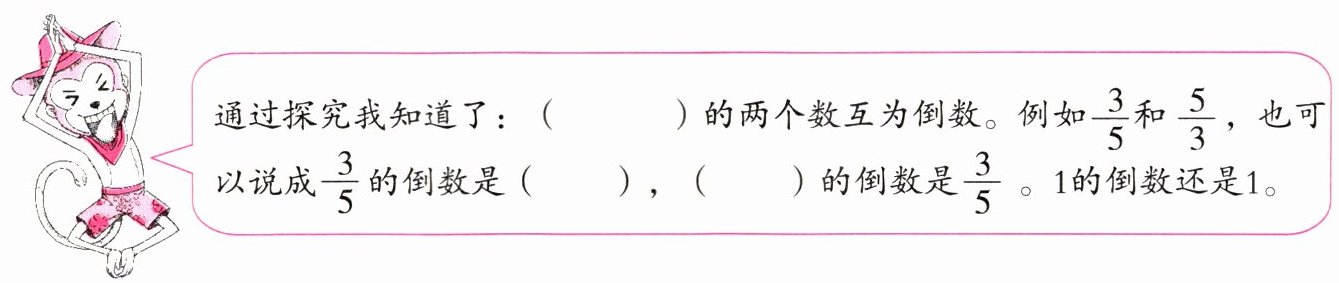 )的两个数互为倒数。例如 $$ \frac{3}{5} $$ 和 $$ \frac{5}{3} $$ ,也可以说成 $$ \frac{3}{5} $$ 的倒数是($\frac{5}{3}$