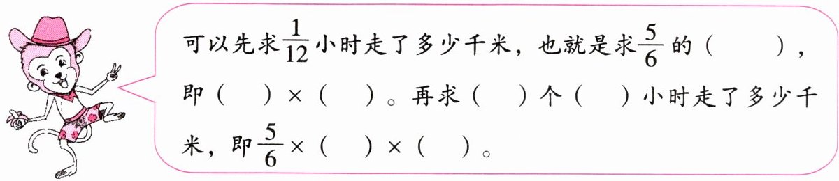 可以先求$\frac{1}{12}$小时走了多少千米,也就是求$\frac{5}{6}$的(
