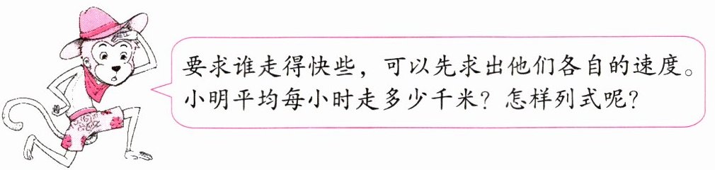 (4) 小红平均每小时走几千米?试着算一算吧。