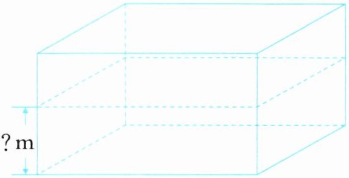 解:长方体体积公式:$V = 长×宽×高$,则水深$h = V÷(长×宽)$