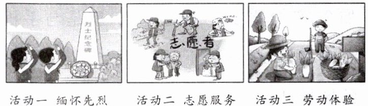 学校推荐了缅怀先烈、志愿服务和劳动体验等三个研学旅行活动。