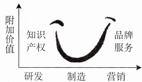 5. 在一次企业管理者培训会上,一位经济学专家形象地解读了“微笑曲线”(如图)。在经济全球化背景下,制造业的设计、生产、组装、营销、售后服务等不同环节的利润率是不同的,其中营销和研发在企业价值链上居于较高地位。下列事例能体现图示理念的有( )