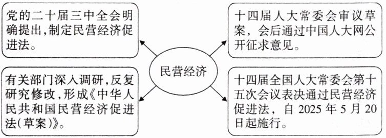 立法,是发扬民主、集思广益、凝聚共识的过程。下图是《中华人民共和国民营经济促进法》制定过程的几条信息,请你仔细阅读并完成任务。