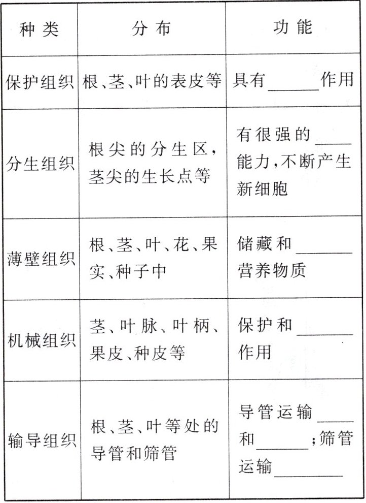 营养物质||机械组织|茎、叶脉、叶柄、果皮、种皮等|保护和