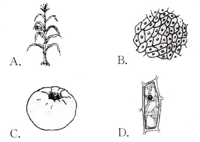 )①一朵桃花 ②洋葱表皮 ③一个苹果 ④番茄果肉 ⑤一颗花生 ⑥橘子皮