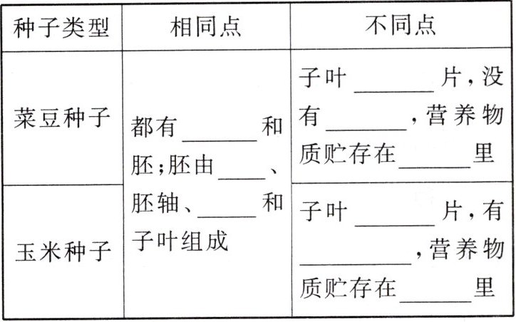 1. 比较菜豆种子和玉米种子的结构异同点。