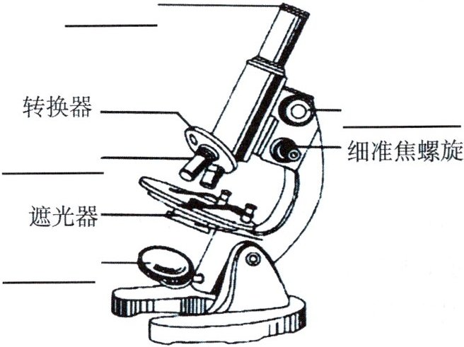 1. 在下图中填出单目显微镜的部分结构名称。