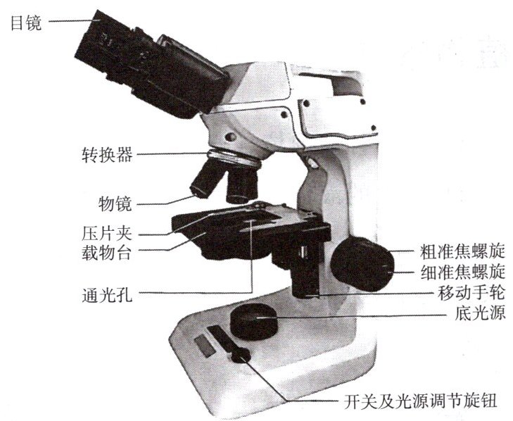 10. 某校生物实验室采购了如下图所示的双目显微镜,该显微镜将反光镜换成了照明灯。同学们使用该显微镜观察植物细胞临时装片后进行了讨论交流。