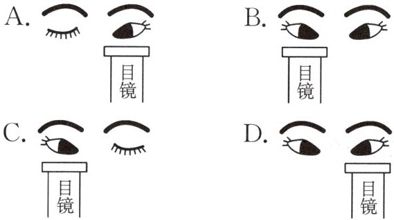 4. 下图表示一个用右手写字的人用显微镜观察玻片且在绘图,眼睛和镜筒的正确位置关系应为(