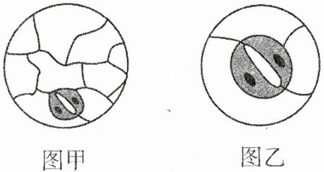 2. 某同学在显微镜下观察叶片表皮的气孔结构时,想要将视野从图甲转为图乙,他应该(
