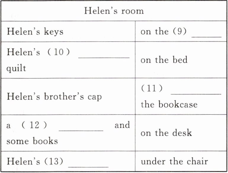 9.sofa 10.blue 11.in 12.clock 13.schoolbag