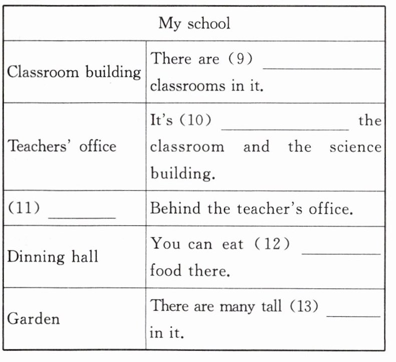 )6. Where is the classroom?A. It's behind the teachers' building.