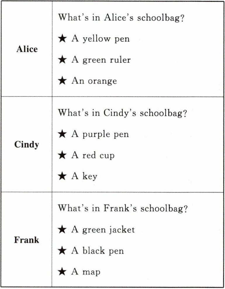 )2. You can see a ______ in Cindy's schoolbag.A. ruler
